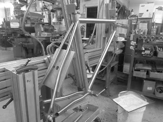 There are several interesting things going on here. We had a nice "mixed" surface ride on friday morning with my boss Bobo and my friend Todd who is a physical therapist and helped me out with my back problems. Everytime that I ride with Todd he always likes to hit as many spots as possible and on as many surfaces as possible. Usually we ride cross bikes and he is on his old "Blue Steel" roadie/cross bike he dug out of the garbage and salvaged....and now loves and rides as much as his two Moots. So, it was a great ride on Friday. I was on the new Gunnar, Bobo was on the new Seven Expat gravel grinder pictured above, and Todd was on old Blue Steel. We found that some of the trails were icy and we were unable to ride and had to walk our bikes. Either way I got to hang with some rad dudes, ride an awesome bike, see some new terrain....and get 40 miles before my 9 hour work day even started. Pictured above is some awesome ski jump just south of crystal lake in fox river grove....I couldn't imagine jumping off one of those things. Great ride...good people...and I love riding with Bob because he is sooo relaxed on the bike, so I need to help him ride more often and relieve the stress of the bike shop.